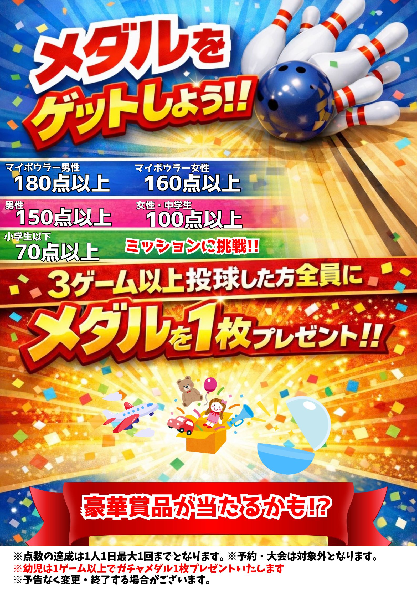 ボウリングの後に豪華賞品が当たる⁉ガチャイベント開催中。ミッションクリアで最大2回ガチャガチャができます!